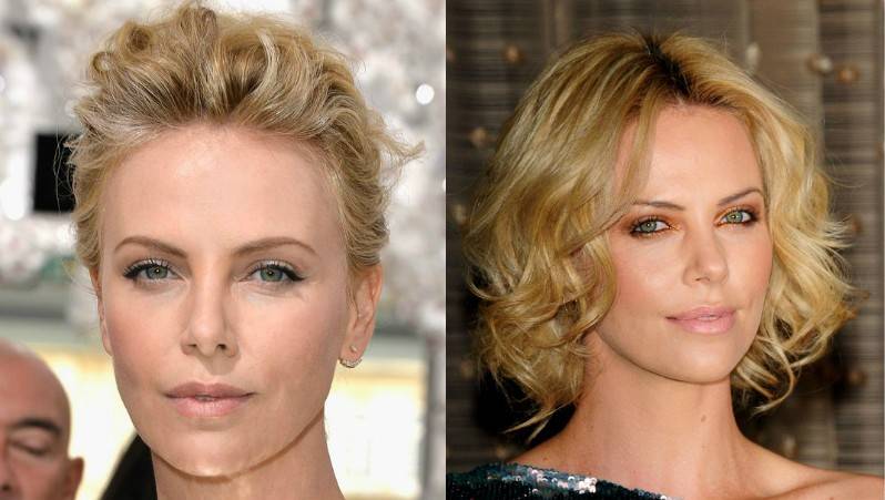 Шарлиз Терон, обладающей собственными красивыми локонами, приходилось не единожды менять стрижку, стричься «под мальчика», сбривать их наголо, а затем вновь их отращивать, чтобы создать новую прическу. К лицу Шарлиз Терон подходит самым удивительным образом, каждая из новых ее причесок, оформленная в виде: 1. Объемного каре с мягкими завитками.