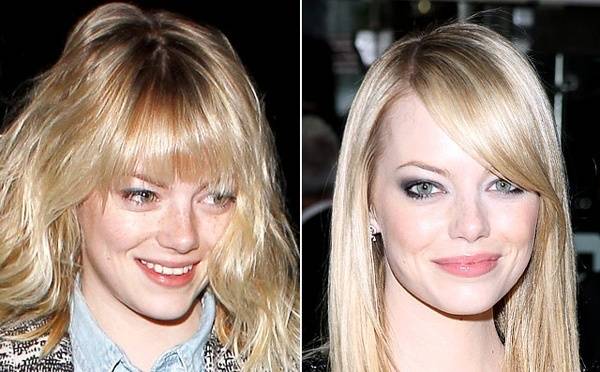 Молодая актриса Эмма Стоун (на фото) не перестает удивлять фото-метаморфозами своей внешности: блондинка, шатенка и рыжая в одном лице. Обладательница яркого и запоминающегося облика, девушка умеет эффектно подать себя при помощи грамотного макияжа. Благодаря красивым губам и восхитительному взгляду, Эмма может свободно перемещать акценты, выполняя мейкап. Ее излюбленный образ – голливудский ретро-стиль: черная подводка, заканчивающая стрелками, идеальная фарфоровая кожа, ярко-красные губы.
