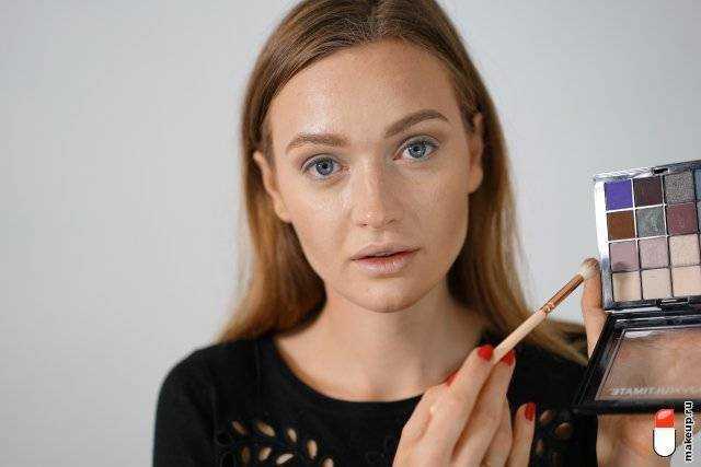 - Более насыщенный шоколадный оттенок теней добавьте в складку века и растушуйте. Это придаст глазам выразительности и визуально увеличит их. Используя разные оттенки теней, вы уходите от плоского макияжа.