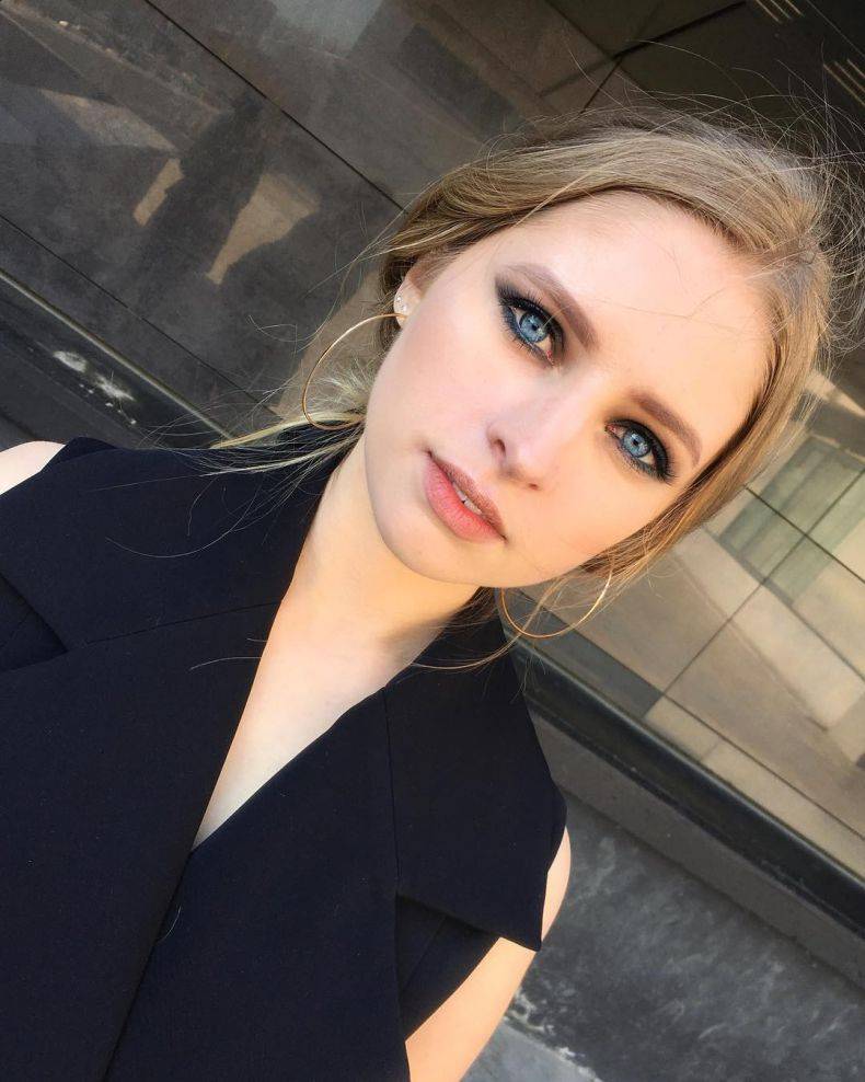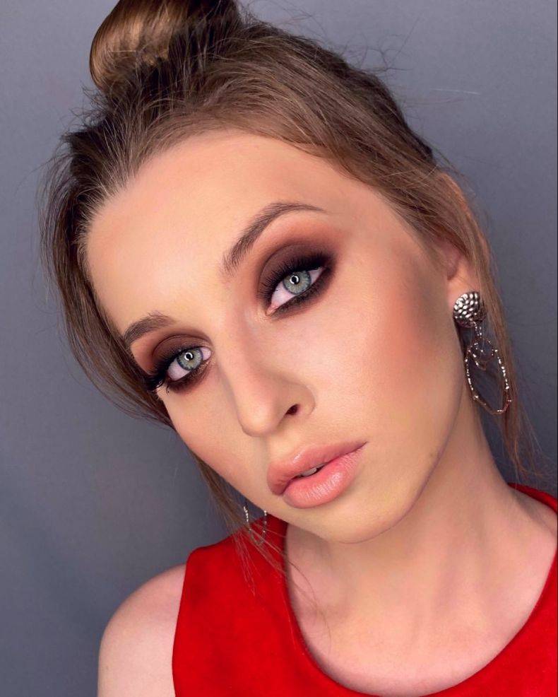 Это классический вариант мейка для дам с голубыми глазами. Он хорошо подчеркнёт цвет радужки, визуально сделает ее более яркой.
