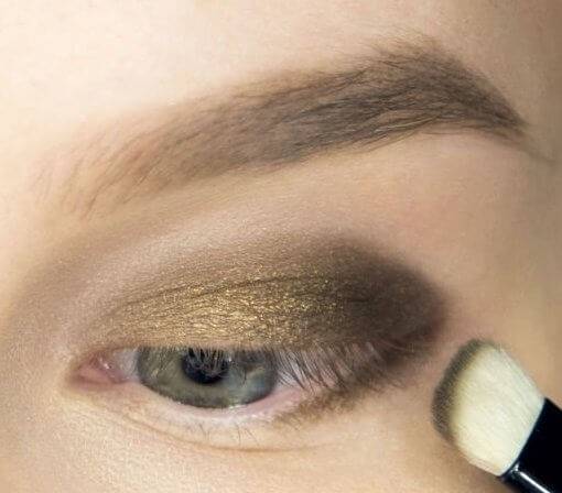 4 Наберите на пушистую натуральную кисть коричневые тени и растушуйте границу орбитальной линии. Это же действие проделайте и на нижнем веке.