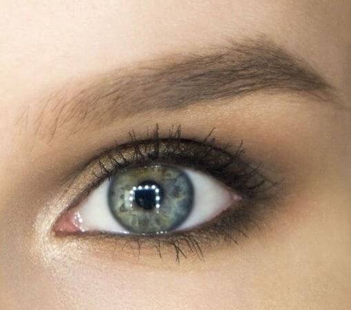 - Наносятся светлые тени. Тени светло-серого, жемчужного, бежевого или другого подходящего тона наносятся на верхнее веко от складки вверх к бровям. Растушевываются границы и переходы от одного оттенка к следующему.