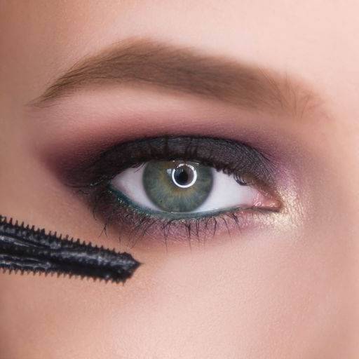 Последний штрих к безупречным smokey eyes — тушь глубокого черного оттенка, смотрится выразительно и сексуально.