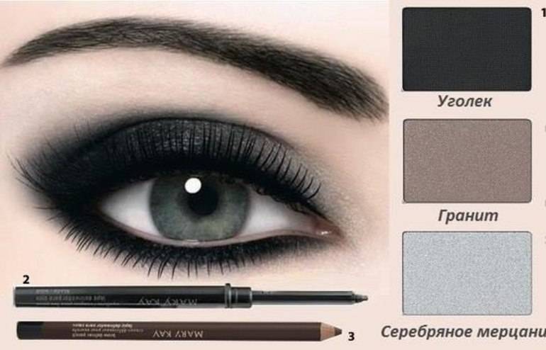 - Особой популярностью на косметическом рынке пользуется фирма Mary Kay. На сайте магазина, можно увидеть целый перечень необходимых средств для создания “smoky eyes” и рекомендации по применению каждого продукта. Среди теней предлагаются как мерцающие, так и матовые оттенки. Богатая палитра позволяет выбрать тени, подходящие для любого типа кожи. При легкой текстуре они долго остаются на веках и не скатываются.