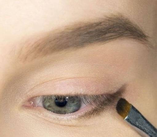 Эта техника позволяет подкорректировать форму – визуально поднять опущенные уголки, сделать верхнее неподвижное веко более высоким, скрыть мелкие морщинки.