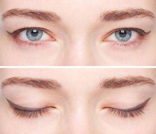Если рисуете стрелки, начинаться они должны от середины века, а не от внутреннего уголка. В противном случае глаза будут выглядеть меньше. А вот если сделаете акцент на внешние уголки глаз, это сыграет вам на руку. Также старайтесь рисовать по возможности тонкие линии и максимально близко к линии роста ресниц.