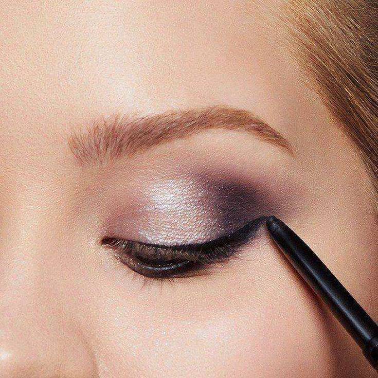 Чтобы придать глазам большую выразительность и отвлечь внимание от нависших век, необходимо в обязательном порядке высветлить область под бровями.Для визуального увеличения маленьких глаз выделяйте с помощью светлого карандаша внутренний уголок нижнего века.
