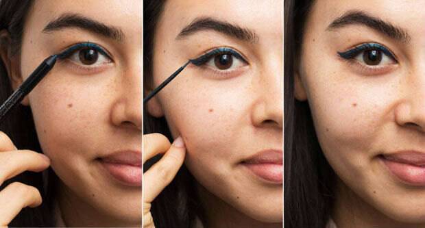 Затем вытяните подводку для глаз за край вашего века и вверх. Следуйте за кривой вашей нижней линии ресниц, чтобы помочь вам создать нижнюю часть вашей стрелки. Вернитесь к стрелке, чтобы заполнить любые пробелы в лайнере.