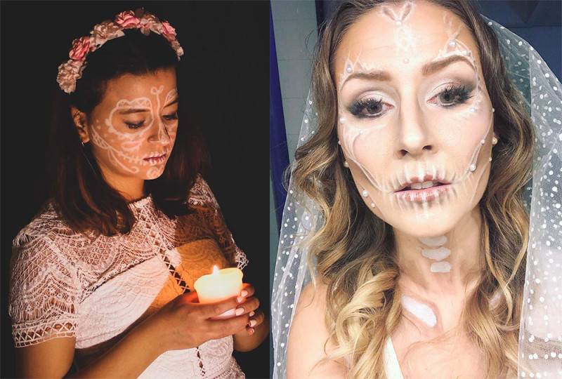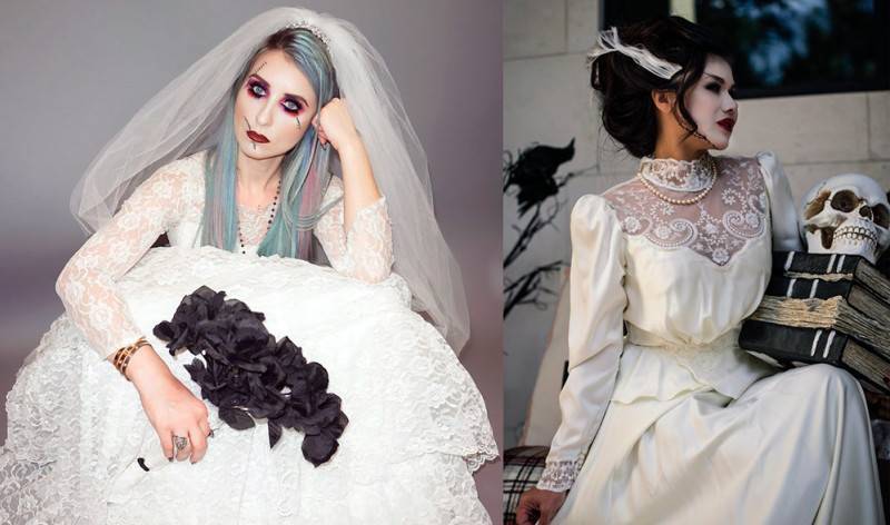 В зависимости от общей задумки и выбранного образа подбирают и макияж невесты на Хэллоуин.