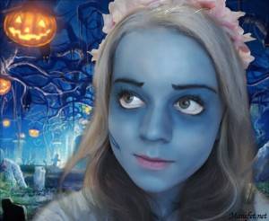 - В качестве вдохновения вам пригодится образ главной героини из мультфильма «Труп невесты» Тима Бертона – ее кожа отливает той самой синевой, которая нужна и в реальном образе на Хэллоуин.