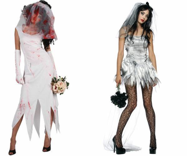 Если у нас есть платье и фата, то сделать костюм мертвой невесты будет достаточно просто. Нужно будет просто испортить одежду. Платье потребуется порвать в нескольких местах и испачкать землей. Очень колоритно выглядят гелевые червячки, прицепившиеся к платью, ведь наша невеста недавно выбралась из могилы, поэтому присутствие червей на её наряде вполне естественно.