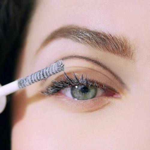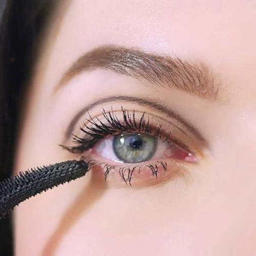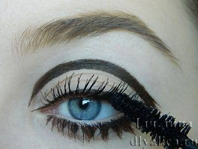 - Заключающий штрих — нанесение туши на ресницы. Именно от успешного выполнения этого шага будет зависеть весь полученный эффект. Ресницы должны быть слегка склеены и густо намазаны тушью. Допустимо также подрисовывание волосинок на нижнем веке. Чтобы ресницы хорошо слипались, можно использовать тушь со специальным эффектом или воспользоваться помощью пинцета. Чтобы не испачкать веки, в момент прокрашивания ресниц можно подкладывать ватные диски.