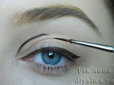 Бровь слегка подкрасьте, но так же оставьте без чётких границ для натурального эффекта.