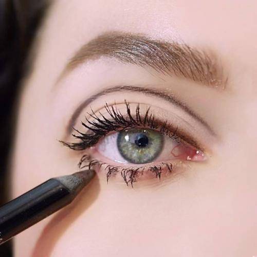 Карандашом нарисуйте точки под нижними ресницами – так они будут выглядеть гуще. Эффект должен получиться таким, будто ресницы отбрасывают тень.