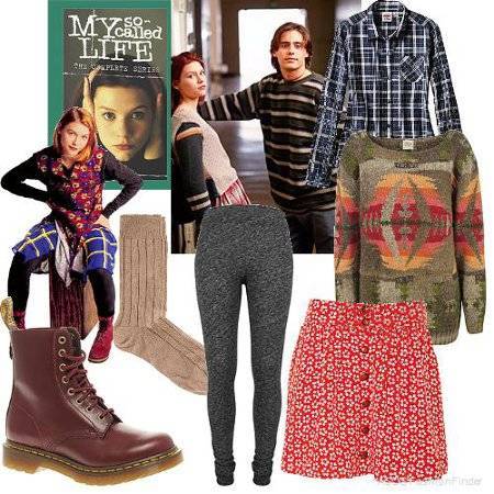Девушкам стоит выбирать максимально простые наряды. Например, отличный образ из девяностых можно создать с помощью белой футболки, варёных джинсов, кожаного жилета и круглых очков. Также подойдут объёмные свитера и длинные туники, широкие кожаные штаны, обувь без каблука, цветастые короткие платья.