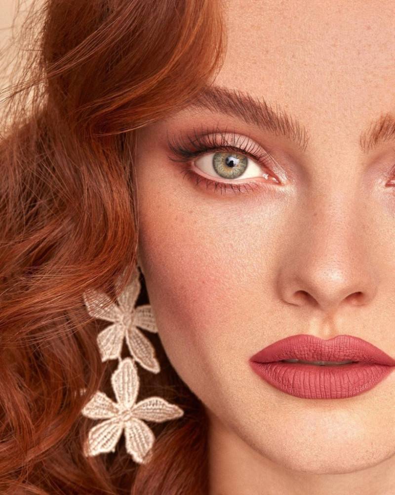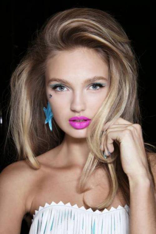 - Электрика. Это означает матовую фактуру в тенях, тональных средствах и помадах, в естественности бровей, в подчёркнутом румянами рельефе скул и сочности губ с натуральными оттенками.