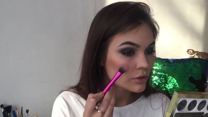 Дальше при помощи румян подкрашивают щечки. Для этого случая отлично подойдут персиковые оттенки. С ними удастся добиться эффекта сияющей свежести.