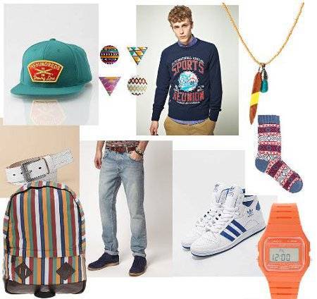 Девяностые — особое время для нашей страны. Период потрясений и перестройки отразился в бунтарском стиле одежды молодёжи тех лет. В 90-е популярности набирает панк и рок, что отразилось в нарядах парней и девчонок. В это же время ведущие дизайнеры заговорили о стиле унисекс — одежде без ярко выращенной половой принадлежности. Парням для дискотеки 90-х нужно выбирать джинсовую одежду с «варенным»принтом. В идеале можно подобрать своеобразный костюм из денима — джинсы и куртку. Обязательным атрибутом этого образа должны стать белые кроссовки. Также парню можно надеть кожаную косуху, кеды, футболку с изображением рок-идолов тех лет, рваные джинсы и бейсболку.