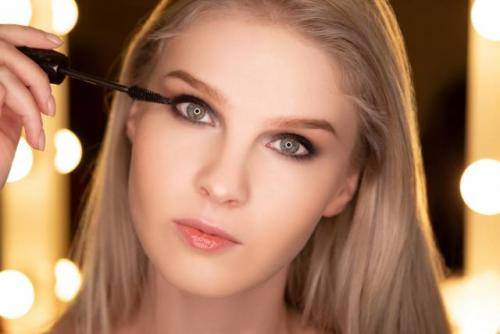 - Покройте ресницы черной тушью, придающей объем.
