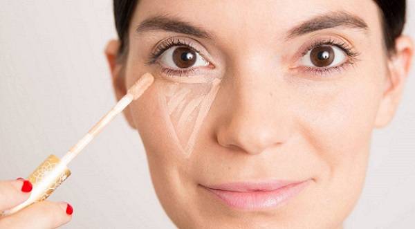 - Консилером высветлите область под глазами, центр лба, скулы, зону над верхней и под нижней губой.