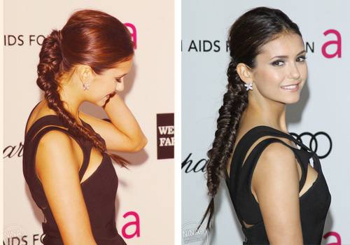 В моде коса «рыбий хвост», перевернутая французская коса, а также коса колосок. Все эти косички модно увидеть в сериале. А вот на красной ковровой дорожке Нина Добрев зачастую появляется с аккуратными тугими косами, которые делают ее образ более элегантным.