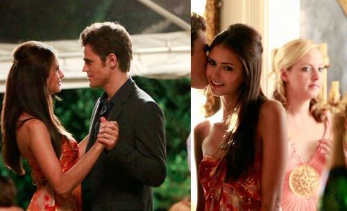 During events such as the masked ball, the beauty pageant in Mystic Falls or the Sixties party, Elena usually wears her typical total nude look (even her lips are always nude).