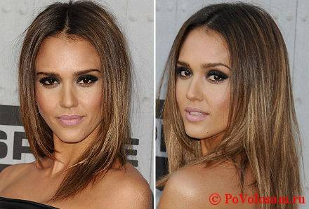 - Джессика Альба выбирает окрашивание с едва заметными переходами тонов, придающих ее волосам эффектное сияние.