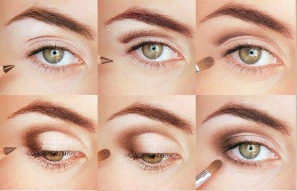 На внешний уголок глаза наносятся тени темных оттенков, а на внутренний угол и места под бровью более светлые. Желательно использовать тени таких оттенков как ореховый, молочный шоколад, айвори, персиковый в зависимости от цветотипа внешности. Самое главное — нужно хорошо растушевать тени, чтобы не было видно переходов и границ.