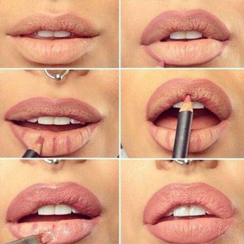 - Также не забывайте делать контур губ с помощью карандаша. Таким образом, ваши губки будут выглядеть более пухлыми и привлекательными.