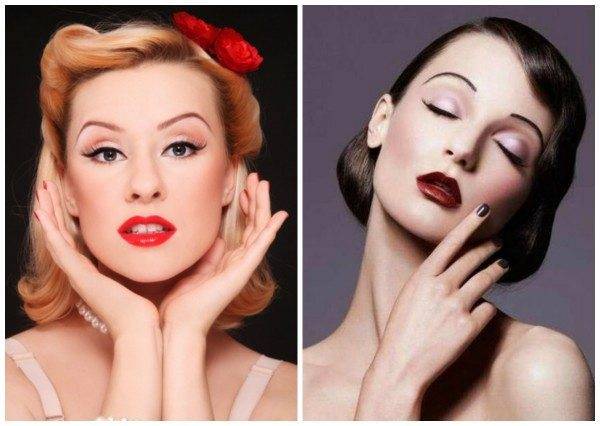 Лучше всего макияж ретро подойдет девушкам с аристократично бледной кожей. Ее прекрасно оттенит красная помада и другие яркие штрихи. Чтобы макияж выглядел органично, должна быть продумана одежда и прическа. В противном случае образ будет неуместно и смешно. Существует несколько разновидностей мейкапа в стиле ретро, каждый их которых имеет свои особенности.