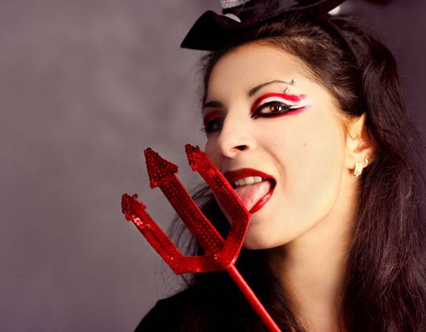 Красивый макияж призван подчеркивать естественные достоинства женского лица – глаза, губы, скулы. Для создания мрачного праздничного образа подойдут любые оттенки темных тонов. Не стоит бояться подчеркнуть глаза ярче, чем обычно. Смелые смоки и вызывающие оттенки алых тонов помад на празднике Хэллоуин будут смотреться вполне уместно. Также можно добавить подходящую бижутерию и аксессуары.