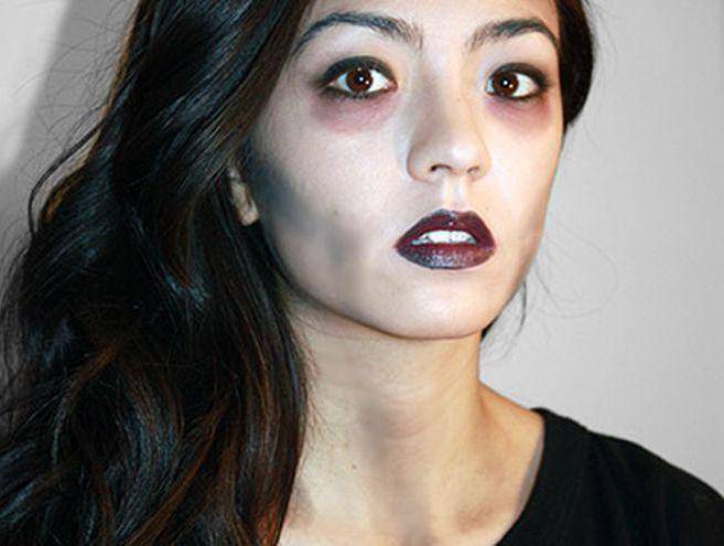 Вторым по популярности является макияж вампира или вампирши на Хэллоуин. Создание этого грима требует немного больше усилий и времени, поскольку предполагает бледный тон лица с контрастными губами и глазами. Сделать его поможет следующая последовательность действий: