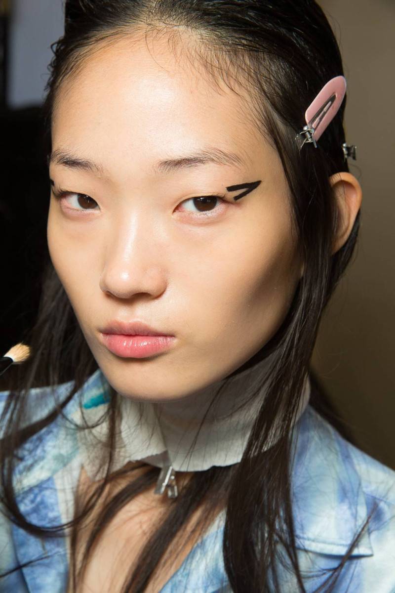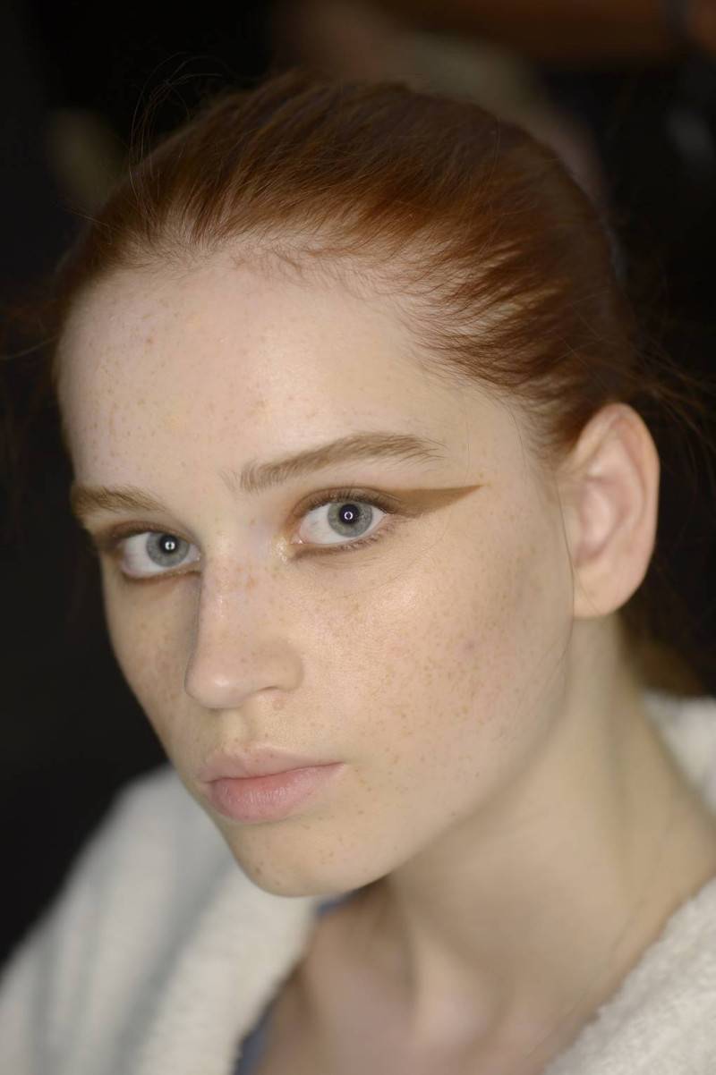Взгляд кошки смотрит на нас с многочисленных фото последней недели и моды. В то время как большая часть лица была в минимальном цвете, глаза поражали своей яркостью. Глянцевая жидкая подводка с большими крыльями на внешнем углу — несомненный тренд нового сезона.