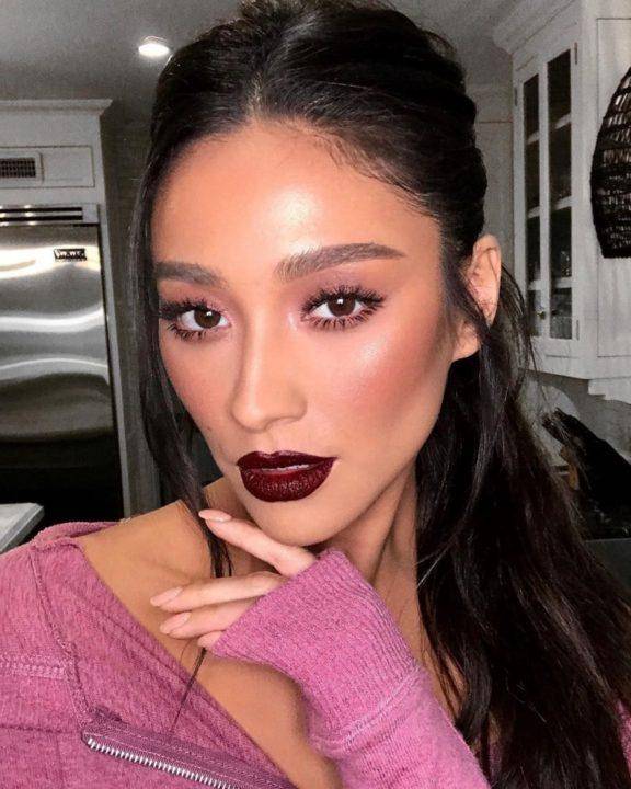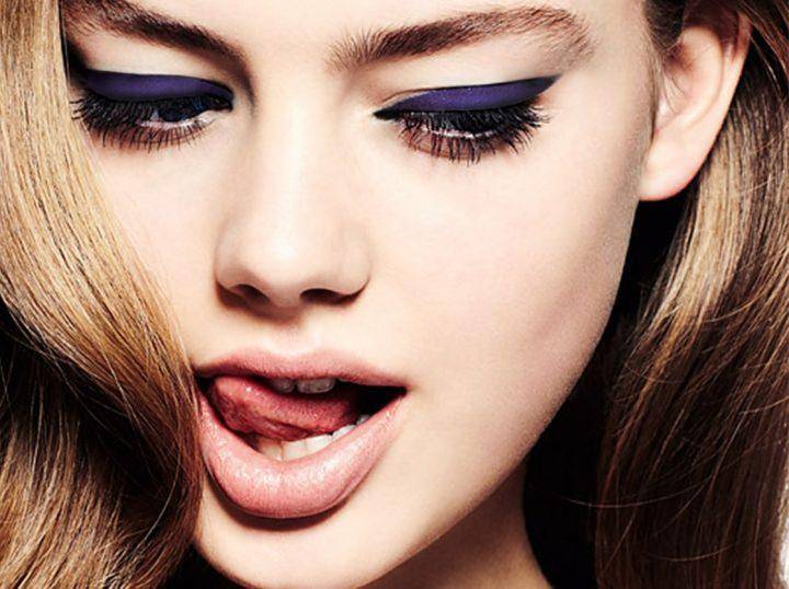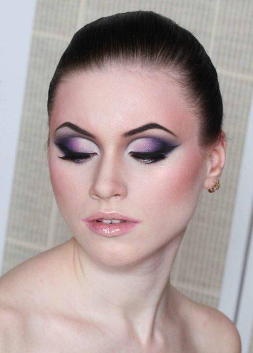 Если девушка хочет остановить свой выбор на фиолетовой губной помаде, не следует делать в макияже дополнительный акцент на глазах, чтобы не перегрузить образ.