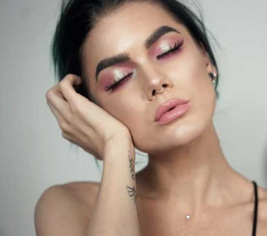 Розовые тени можно совмещать с другими оттенками. Это может быть белый, персиковый, серебро и золото. Не стоит использовать здесь слишком яркие оттенки, ведь розовый мейк-ап предполагает легкость и женственность.