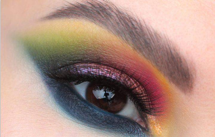 Эффектные тени в сочных оттенках будут популярны для создания трендового мейкапа – colorblock. Выбирайте самые актуальные цвета: оранжевый, красный, зеленый, розовый, желтый и бирюза. Особенность макияжа с тенями в пестрых оттенках – это легкая небрежность, отсутствие четких контуров.