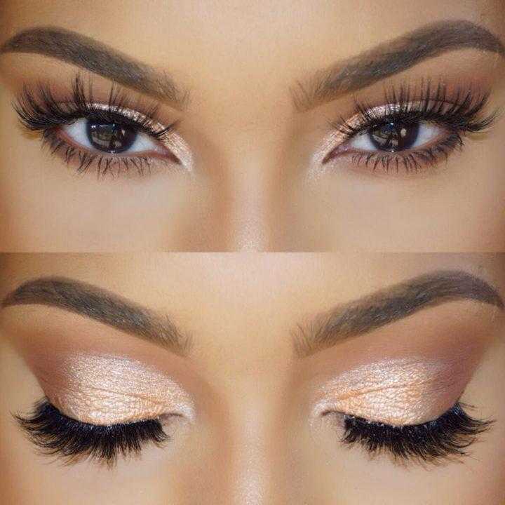 Если вам не привычен макияж с шиммерными тенями, то можно его слегка разбавить. Например, используйте шиммерные тени только как основу, а уголки заполняйте матовыми или наоборот. Также комбинируйте шиммерные тени на все и стрелку гелиевой подводкой.