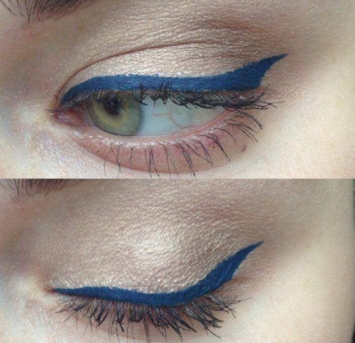 Голубые стрелки на ваших глазках внесут в весь образ морозной свежести. Голубая и синяя подводка красиво подходит к любому цвету глаз. Если у вас голубые глаза, то всегда подбирайте подводку имеющую тон выше или ниже вашего естественного цвета глаз. А иначе вы рискуете тем, что ваш макияж просто сольется в единое целое.