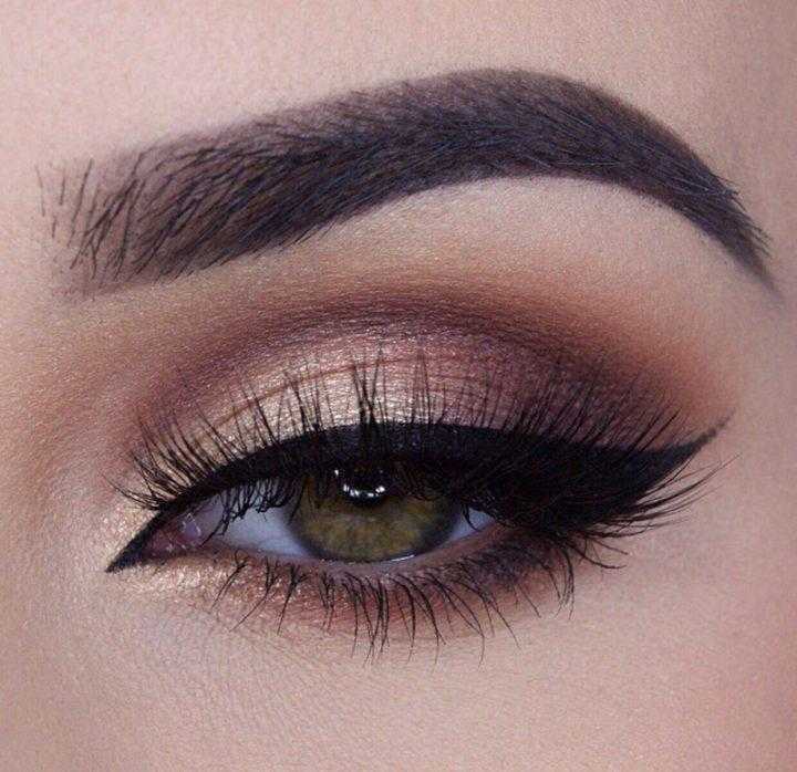 Стрелки нужно использовать если вы решили сделать глаза визуально шире, чем есть на самом деле. Без них макияж будет чувствовать себя вполне естественно и ярко. Для выделения глаз можно подобрать темные или пастельные тени, а также брасматик, который допускается выбирать черным, синим, зеленым и другим цветом.
