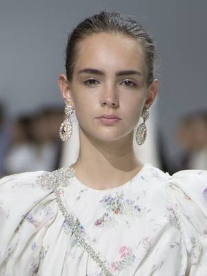 Природное сияние ухоженной кожи привлекает внимание куда больше, чем вызывающий тяжелый контуринг, который делает лицо практически неузнаваемым. Именно поэтому визажисты не спешат отказываться от макияжа нюд даже во время самых эксцентричных показов