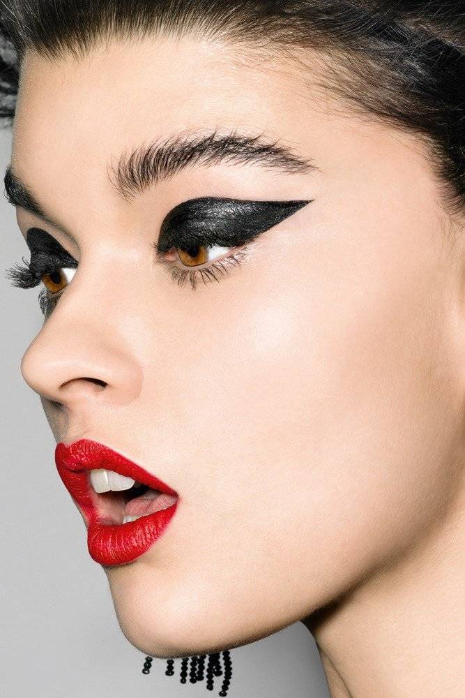 Черная подводка является ключом нового сезона. Для шоу Versus Versace Шарлотта Тилбери создала стрелки с большими крыльями в стиле Эми Уайнхаус. Ведь экстремальные кошачьи глаза — отличный способ добавить немного ретро и соблазнительной опасности к образу.