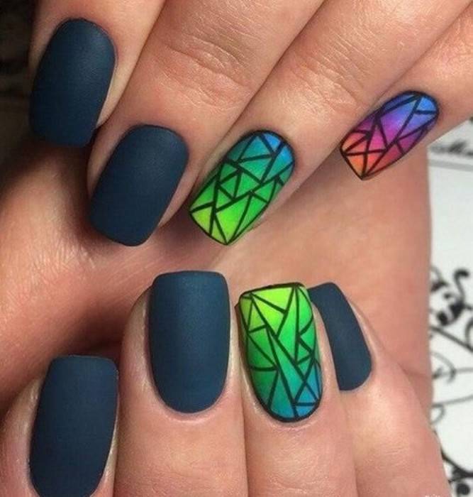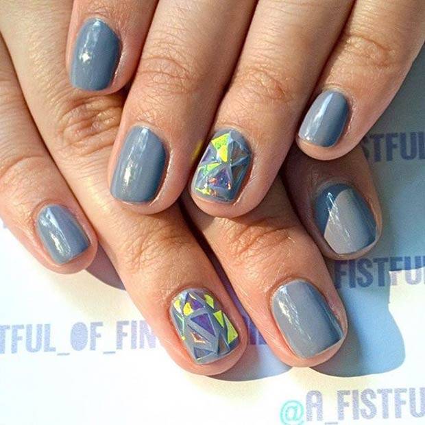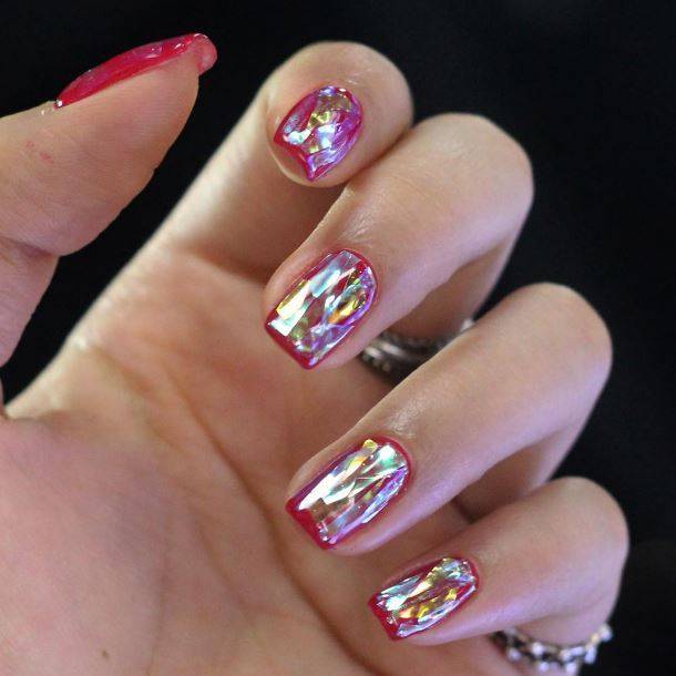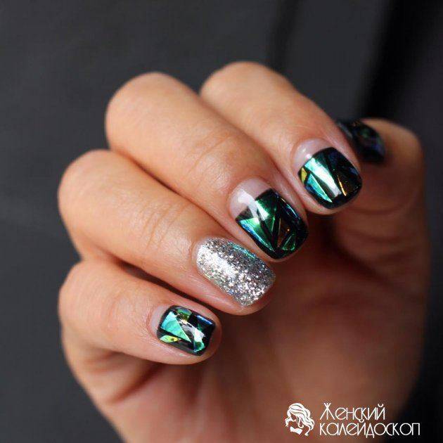 Зачастую девушки используют данный вид оформление летом. Ведь блики и переливание на солнце смотрятся очень необычно! С помощью умелого комбинирования цветов и переливающих осколков можно составить настоящий калейдоскоп.