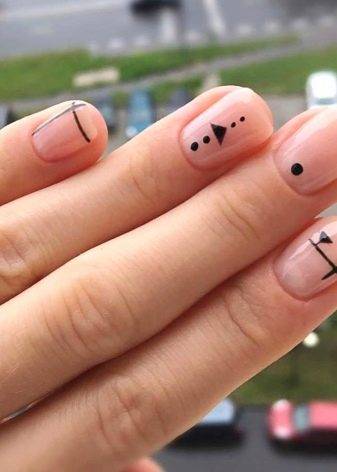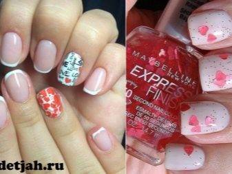 Выразительность маникюру может придать неброский рисунок в виде сердечек, точек, полосок, нежного омбре с блестками.