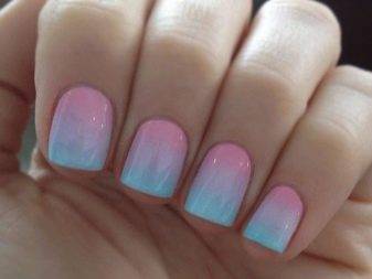 Омбре считается одним из наиболее популярных вариантов оформления ногтей среди молодежи. Интересные сочетания и переход от одного цвета к другому смотрятся очень стильно и универсально, так как подходят к большей части гардероба подростка. Дизайн можно сделать двумя способами.