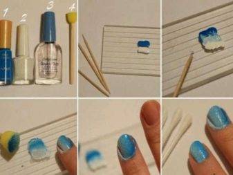 Первый подразумевает омбре на каждом пальце. На кусок губки наносятся желаемые оттенки, после чего рисунок переносят на ногтевую пластину. Переход может быть как от темного к светлому, так и рандомный. Очень красиво на детских ручках будет смотреться переход от малинового к нежно-розовому или от фиолетового к сиреневому. Некоторые предпочитают соединять сразу три цвета, например, розовый, голубой и канареечный или сиреневый, мятный и белый. Все зависит от фантазии подростка.