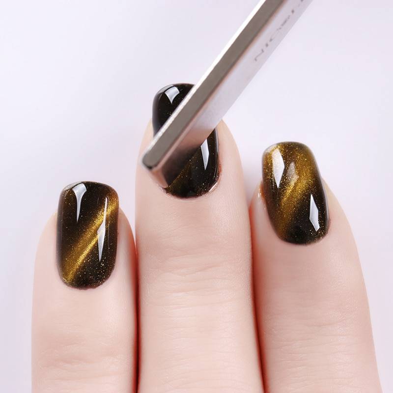 Такой маникюр смотрится не экстравагантно, а элегантно. При помощи специального магнита образуются узоры в виде звезд, спиралей, кругов.