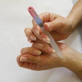 - Полировочным бруском выравниваем поверхность ногтевой пластины.
