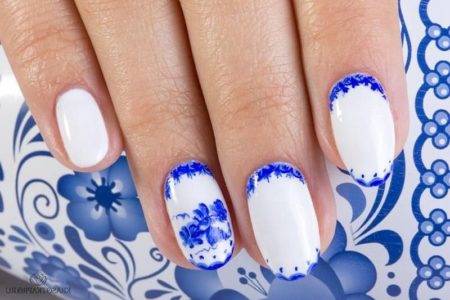 Современные варианты дизайна маникюра просто безграничны. Не секрет, что все новое – это хорошо забытое старое. Поэтому в моду вновь входит роспись гжель, известная нам еще с давних времен. Если вы хотите сделать себе маникюр в таком стиле, можете не сомневаться, он будет выглядеть эффектно, ярко и стильно.