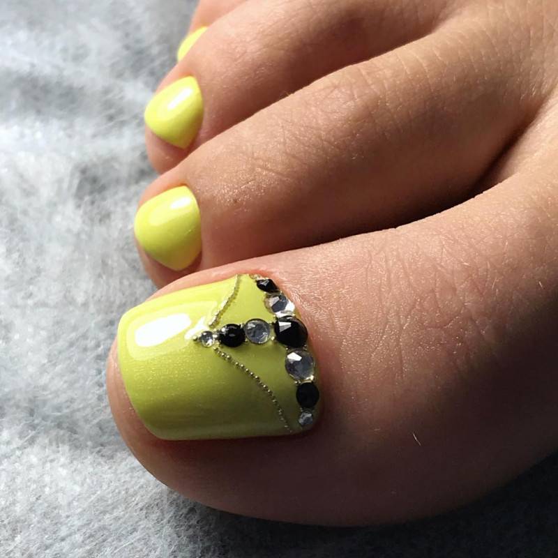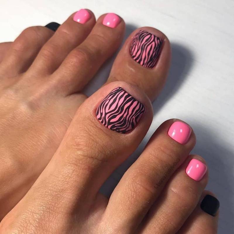 Для дополнительной красоты педикюр часто делают в виде горизонтальной полоски, французской линии или совершенно абстрактного рисунка, просто смешивая цвета иглой перед тем, как подержать пальцы ног в ультрафиолетовой лампе. Линии лучше всего наносить тонкой кистью. Затем наносится основа в 2 слоя. Затем наносится собственно рисунок, который должен хорошо высохнуть.