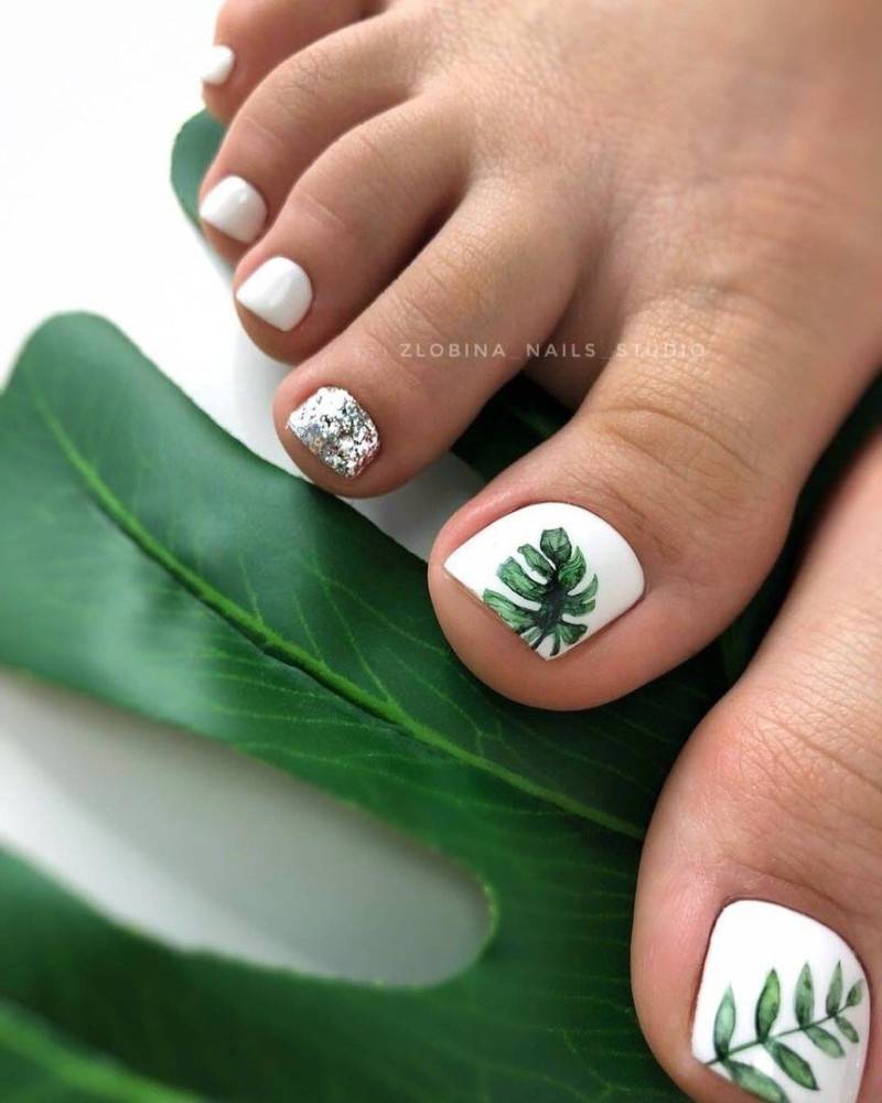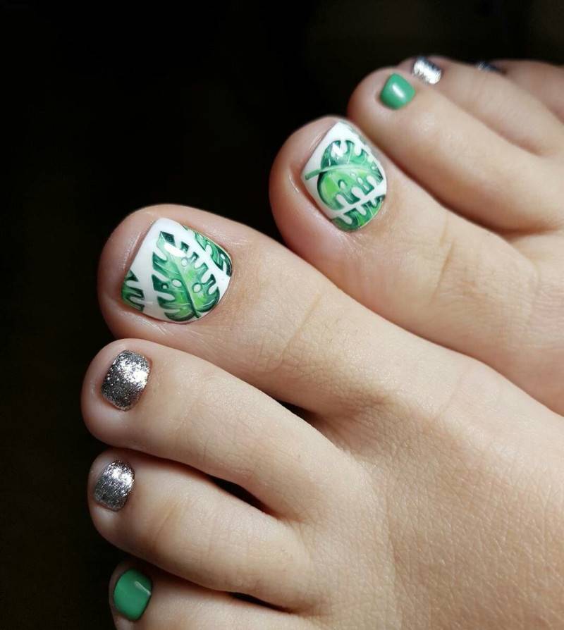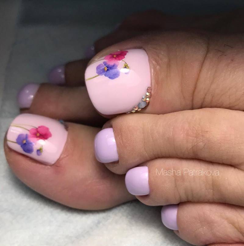 В одном педикюре, несомненно, можно сочетать сразу несколько интересных вариантов. Например, один палец можно украсить контрастным изображением, а другие пальцы — однотонным покрытием в пастельных тонах.